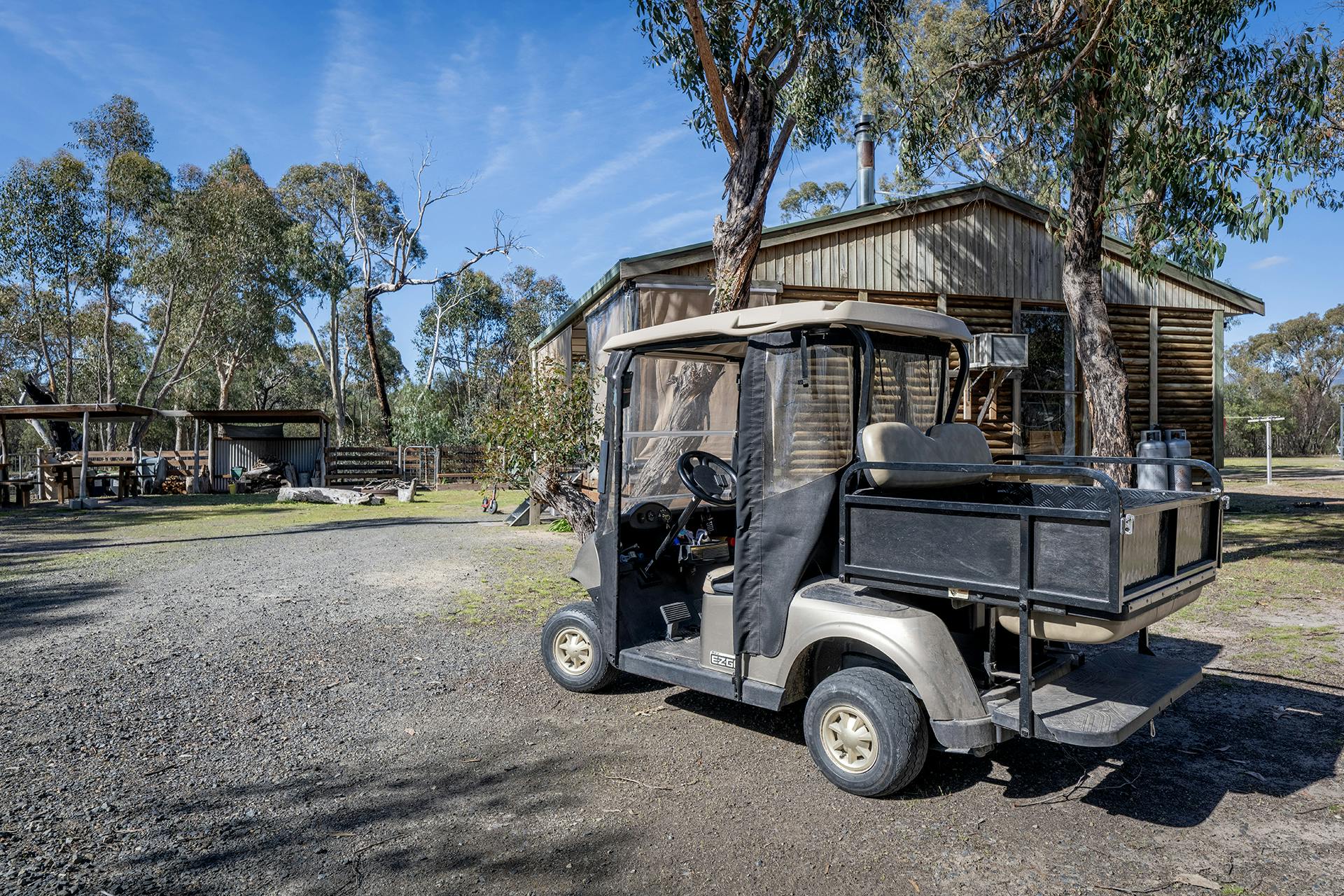 Accommodation includes a log cabin sleeping eight and a Terradome sleeping seven, both featuring modern amenities, new woodheaters throughout, and inviting outdoor entertaining areas. The property also offers a refurbished amenities block, outdoor bar with cooking facilities, large sheds, kids' playground, and a spa ready for connection.